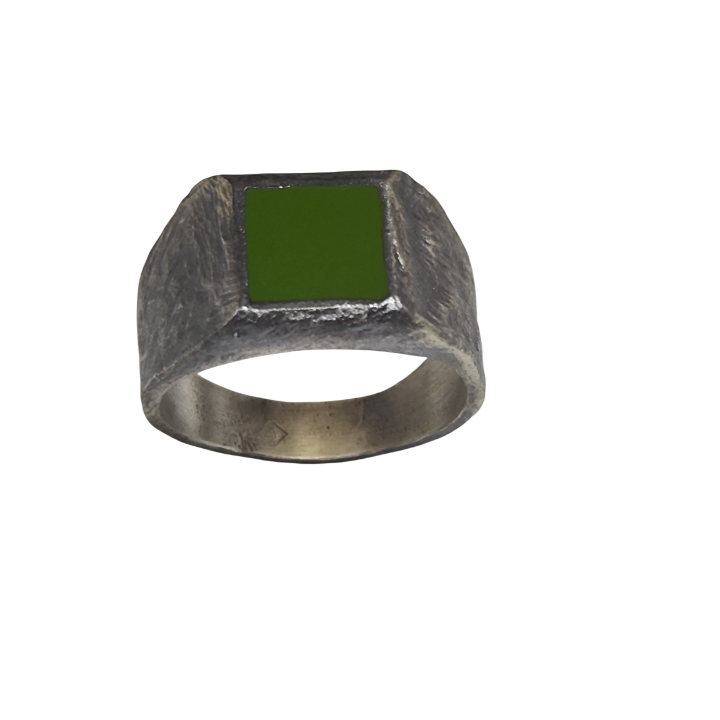 Merkezdeki mine rengi değiştirilebilir. Seçilen ton, yüzüğün ruhunu belirgin şekilde dönüştürür — koyu tonlar daha sert bir ifade sunarken, canlı renkler daha modern bir kontrast yaratır.