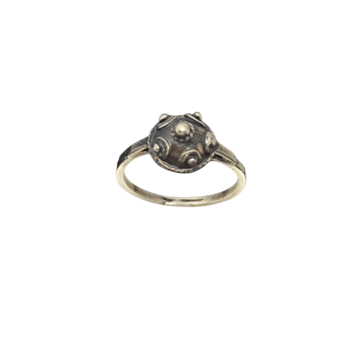 ilk bakışta Viking miğferini andıran kubbemsi formu ile gücü ve korunmayı çağrıştırır; ancak kökenini Anadolu’nun kadim coğrafyasından alan bir tasarımdır. Yüzeyde yer alan güverseli (granül) dokular, antik dönemlerde kullanılan metal işleme tekniklerine gönderme yapar ve yüzüğe arkeolojik bir karakter kazandırır.