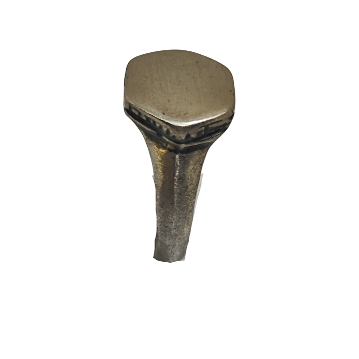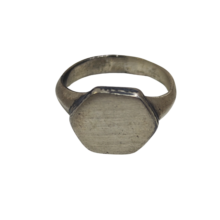The Brothers Jewellery imzası taşıyan bu el yapımı yüzük, sade geometrik formu ve ham yüzey dokusuyla zamansız bir karakter sunar. Üst yüzeydeki altıgen form, güç, denge ve kalıcılığı temsil ederken; bilinçli olarak pürüzlü bırakılan gümüş yüzey, tasarıma doğal ve rustik bir kimlik kazandırır.