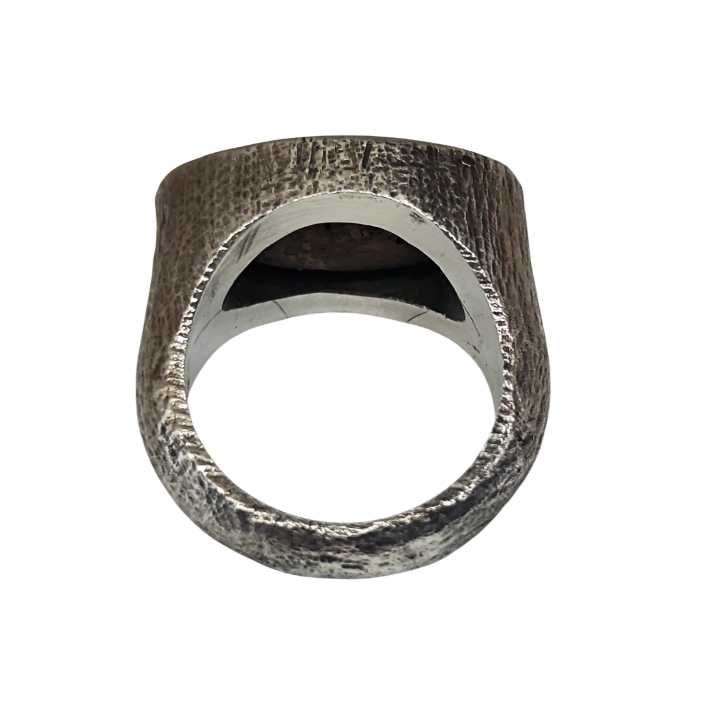 The Brothers Jewellery imzasını taşıyan bu özel yüzük, doğanın izlerini üzerinde taşıyan güçlü ve sade bir tasarımdır. Minimal dövme tekniğiyle şekillendirilmiş yüzey, organik bir doku sunarken yüzüğe doğal ve zamansız bir karakter kazandırır.
