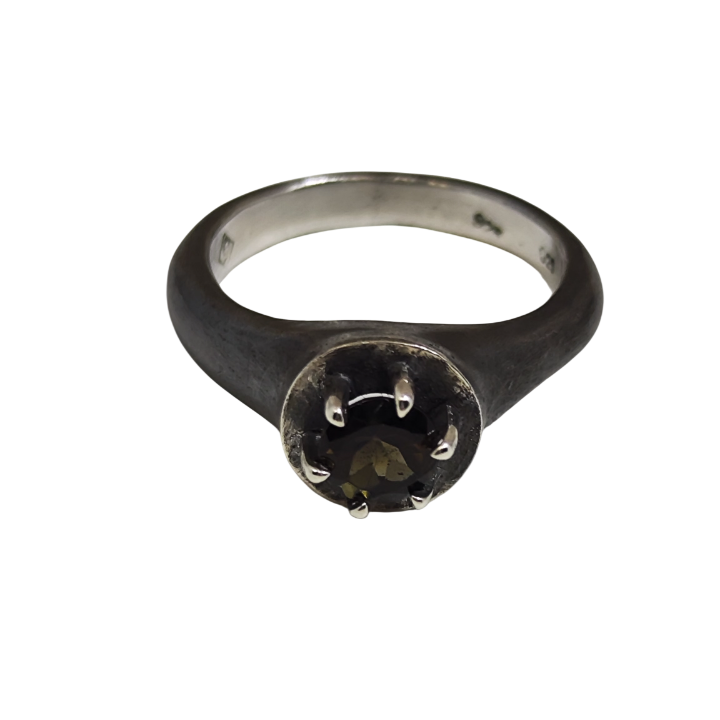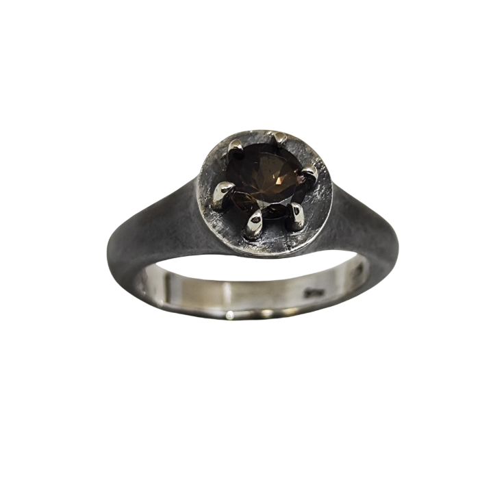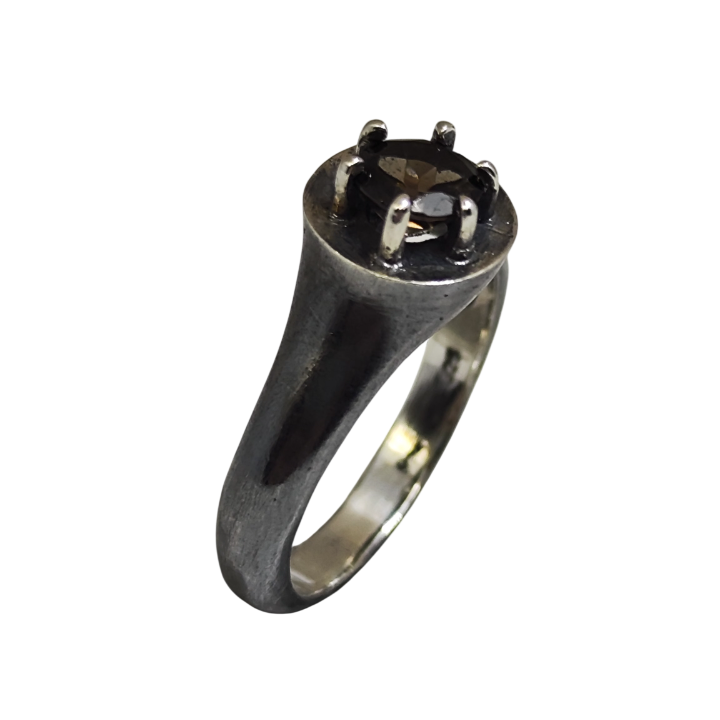 El Yapımı Tek Taş Gümüş Yüzük – Smokey Topaz / Tırnaklı Model / Oksit Montür / Tek Üretim
