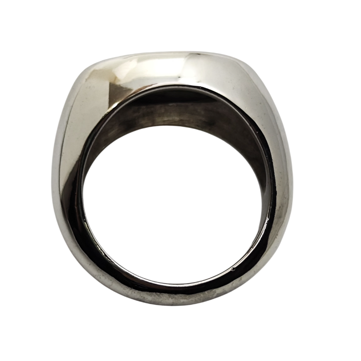 Bu yüzük, klasik mühür formunun enlemesine (yatay) yerleşimle yeniden yorumlanmış halidir.