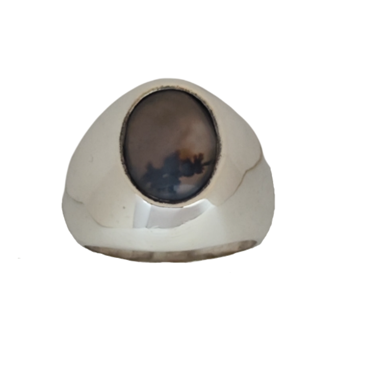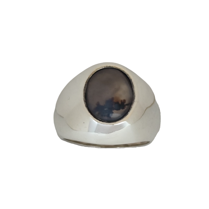 925 ayar gümüş gövde, sade ve dengeli bir form üzerine kurulmuştur. Parlak yüzey, taşın doğal desenlerini ön plana çıkarırken yüzüğe temiz ve zamansız bir estetik kazandırır.