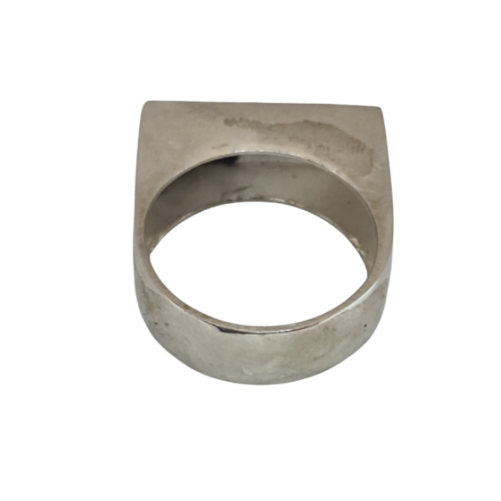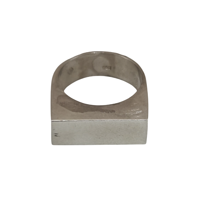 Kütlenin sadeliğinden doğan güçlü bir tasarımdır. Tek parça hissi veren blok formu, yüzüğe mimari bir ağırlık ve net bir karakter kazandırır.
