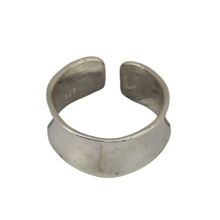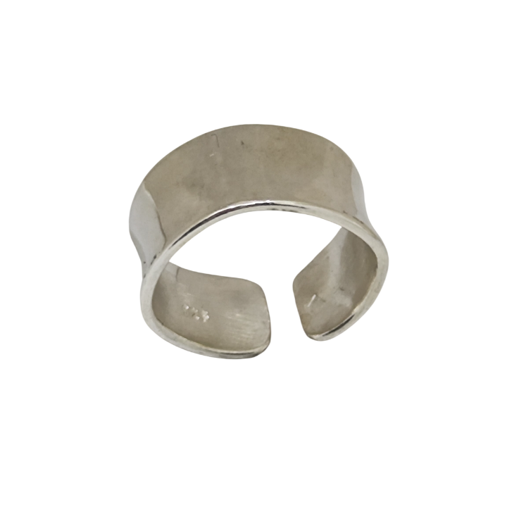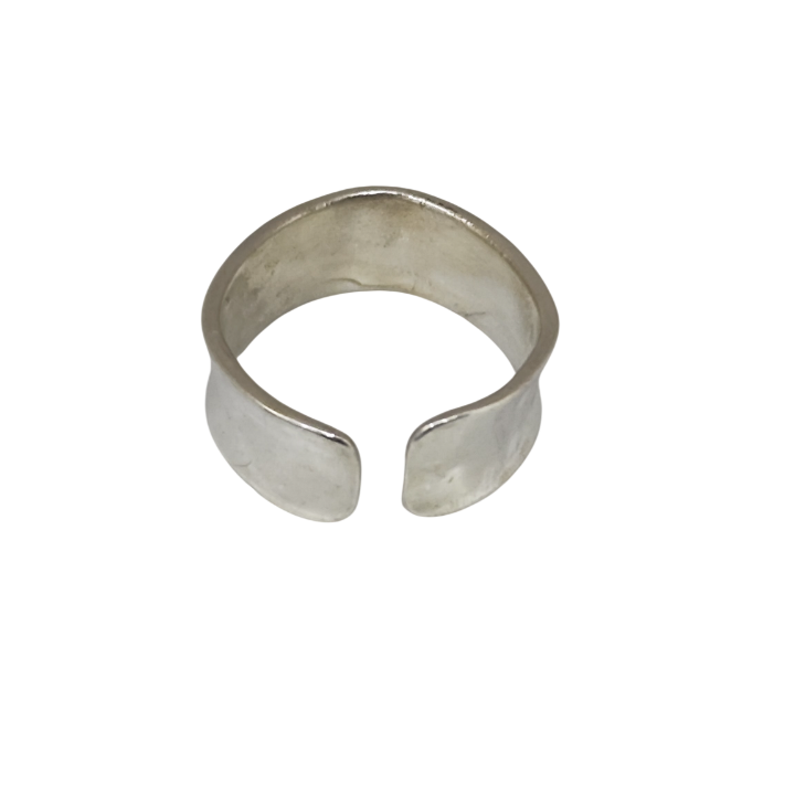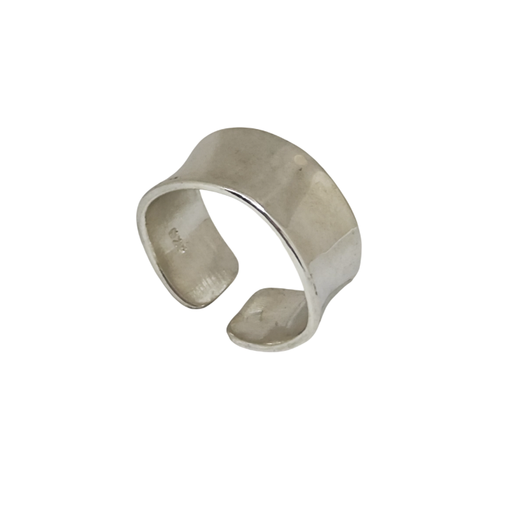 Geniş bant formunun sade gücünü taşıyan heykelsi bir yüzüktür. Açık form yapısı tasarıma hafiflik kazandırırken, geniş yüzeyler parçada modern ve net bir duruş oluşturur.