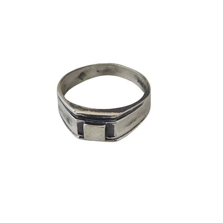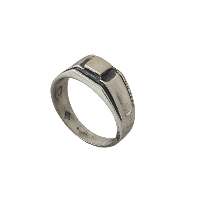 Brutalist yüzey karakteri ile Art Deco simetrisi arasındaki gerilim, yüzüğün en güçlü ifadesini oluşturur. Minimal fakat etkili form dili, parçayı zamansız bir statement yüzüğe dönüştürür.
