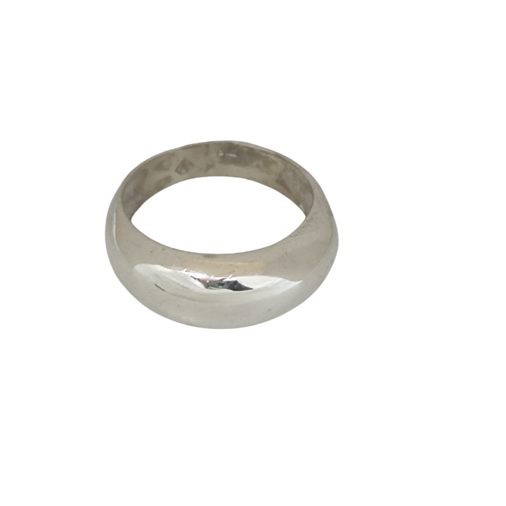 Akıcı hacmi ve kusursuz yüzey geçişleriyle formun saf halini temsil eder. Yumuşak kubbe silueti, ışığı doğal şekilde yakalayarak yüzüğe sakin ama güçlü bir karakter kazandırır.