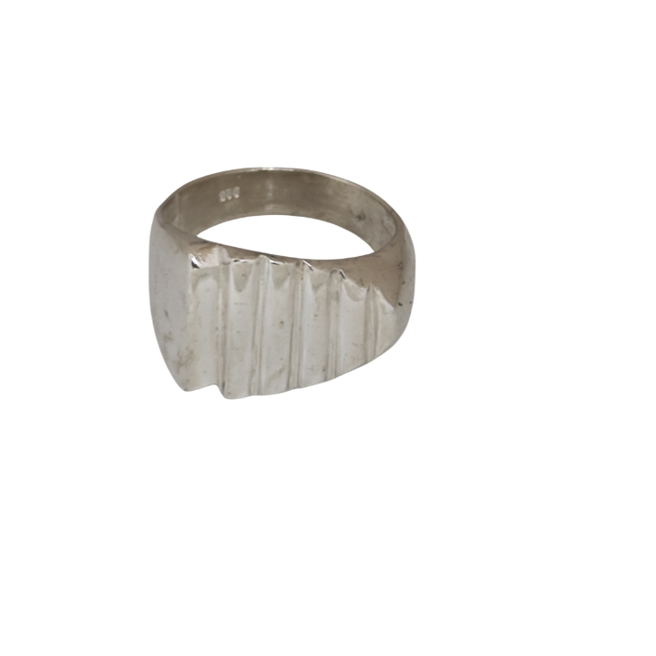 Kademeli yüzeyi ve ritmik çizgileriyle endüstriyel ızgara panellerini hatırlatan mimari bir formdan doğar. Tek yöne akan katmanlı yapı, yüzey boyunca ışığın kırılmasını sağlayarak parçaya güçlü bir cephe hissi kazandırır.