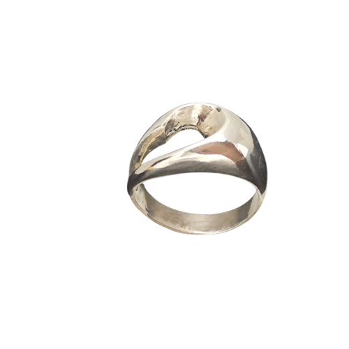 Sıradan takı anlayışını tamamen reddeden bu parça, 925 ayar saf gümüşten el işçiliğiyle üretilmiştir. Keskin yarıkları, asimetrik akışkan formu ve ortasındaki çarpıcı çatlak detayıyla modernist bir manifesto sunar. Mat yüzey ağırlıklı tasarımı doğal parlak vurgularla kontrast yaratır; bombeli ve açık iç yapısı parmakta üstün konfor sağlar. Genişlik yaklaşık 12-15 mm, ağırlık hafif ancak varlığı güçlü.Zamanla kendi patinasını geliştirerek daha da derinleşen karakteriyle, klasik estetik normlarını sorgulayan cesur bir duruş. Günlük kullanıma uygun, oksidasyona dayanıklı ve özgün tasarım
