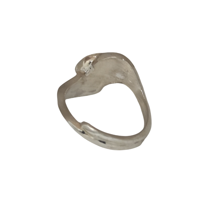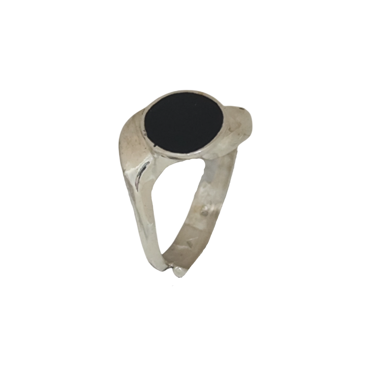 Akıcı ama kontrollü montür, parmak üzerinde doğal bir denge kurar. Üst bölümde yer alan yuvarlak mine (emaye) yüzey tasarımın merkezidir; minimal form içinde güçlü bir odak noktası oluşturur.