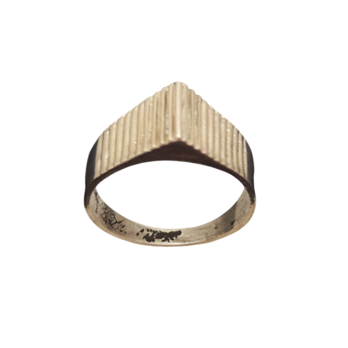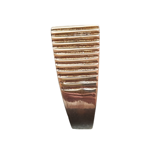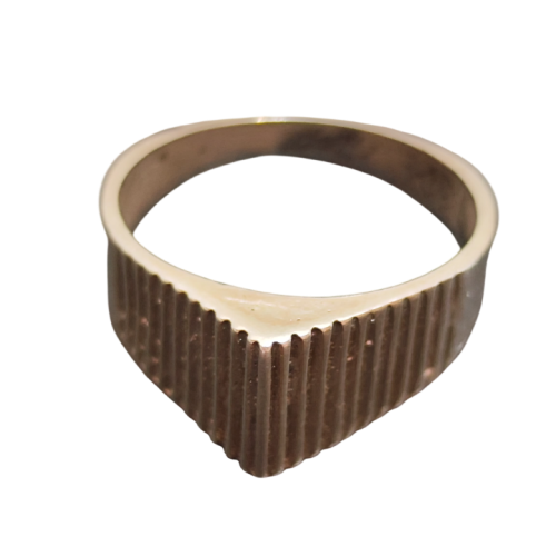 Yüzeydeki çizgiler ışığı kontrollü biçimde kırar; yüzüğe derinlik ve sert bir ifade kazandırır.