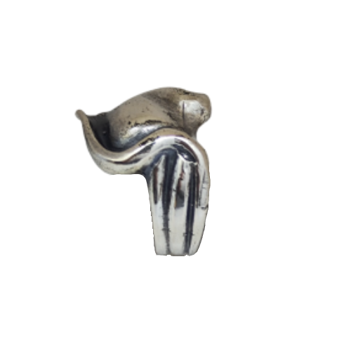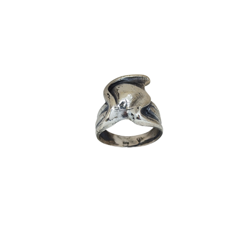 Heykelsi ve organik formuyla öne çıkan modern bir yüzüktür. Alışılmış simetriyi bilinçli şekilde bozan tasarımı, yüzüğe güçlü ve farklı bir karakter kazandırır. 925 ayar gümüşten üretilmiş bu parça, yüzeyindeki akışkan hatlar sayesinde elde dinamik bir duruş sergiler. Neoklasik disiplinden beslenen ama çağdaş ve grotesk bir yorum taşıyan Ahtabuz, klasik modellerden uzak, özgün bir stil arayanlar için tasarlanmıştır.