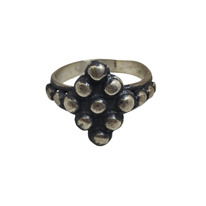 The Brothers Jewellery tarafından el işçiliğiyle üretilen Tribal Dots Ring, seri üretim hissinden uzak, zamansız bir parçadır. Günlük kullanımda rahat bir form sunarken, etnik ve vintage karakteri sayesinde tek başına dikkat çeken bir stil öğesi haline gelir.