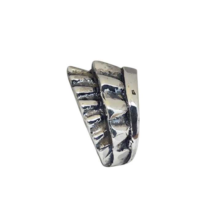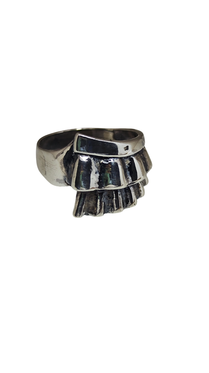 Deniz kabuğunun doğal kıvrımlarından ilham alan akışkan ve organik bir tasarıma sahiptir. Üst bölümde katmanlı şekilde yükselen form, sahile vuran dalgaların bıraktığı kabuk izlerini andıran yumuşak ve hareketli bir siluet oluşturur. Bu yapı, yüzüğe hem doğal hem de dikkat çekici bir karakter kazandırır.