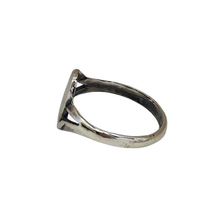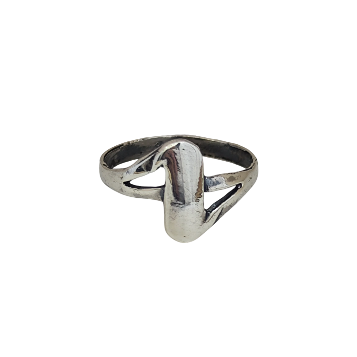 Sade ve fütüristik çizgileriyle tasarlanmış modern bir yüzüktür. Üst bölümde yer alan yumuşak, tek parça form; bir uzay aracı gövdesini andıran akıcı ve aerodinamik bir siluet oluşturur. Abartıdan uzak, net ve dengeli hatlarıyla dikkat çeken bu tasarım, minimal estetiğin güçlü bir yorumudur.