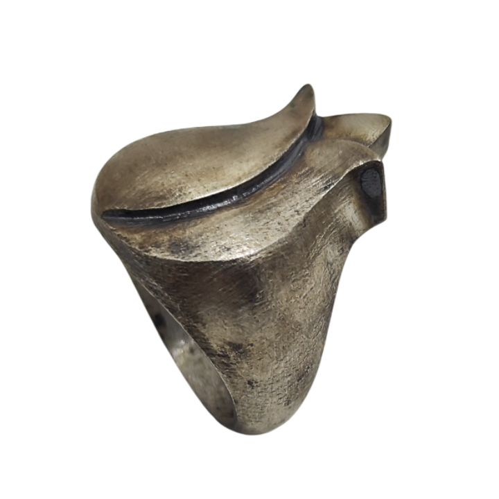 Lale formundan ilham alan heykelsi yapısı ve tok duruşuyla doğanın akışkan zarafetini güçlü bir forma dönüştüren el yapımı bir tasarımdır. Katmanlı yüzey yapısı ve kıvrımlı form, açılmak üzere olan bir lalenin hacmini yansıtırken elde verilen yüzey dokusu ve uygulanan patina parçaya derinlik, ağırlık hissi ve zamansız bir karakter kazandırır. The Brothers Jewellery’nin Kapalıçarşı’daki aile atölyesinde üretilen bu tasarım, organik form ile güçlü silüeti bir araya getiren modern artisan yüzük anlayışını temsil eder. Her parça el üretimi olduğu için yüzey dokusu ve ton geçişleri küçük farklılıklar gösterebilir.