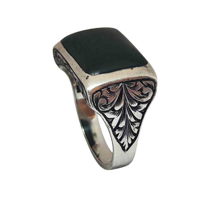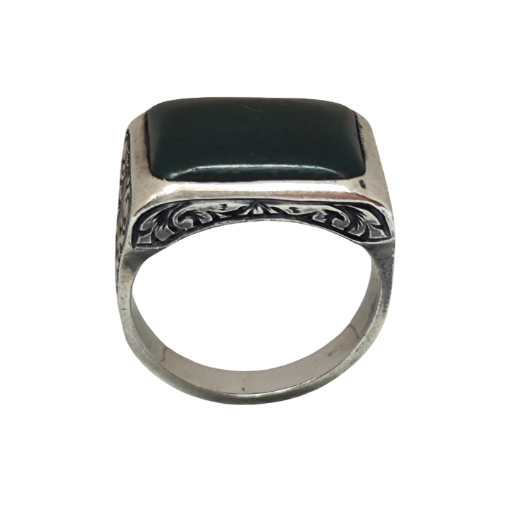 Derin yeşil tonları ve ışığa göre değişen yüzeyiyle kan taşı, tarih boyunca güç, otorite ve kararlılıkla ilişkilendirilmiştir. Bu yüzük, yalnızca bir aksesuar değil; geçmişten günümüze taşınan bir sembol niteliği taşır.